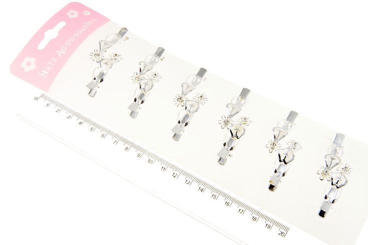 Eleganckie spinki do włosów z kolorowymi kwiatkami. Spinki ozdobione są srebrnym brokatem.