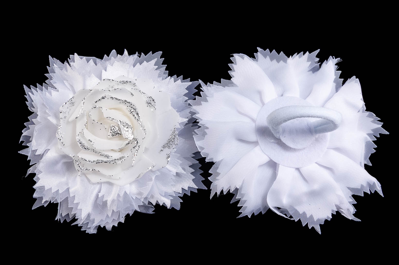 Klasyczne gumki do włosów z uroczą ozdobą w ksztacie róży.