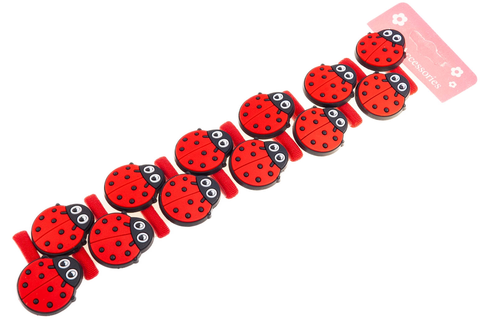 Klasyczne gumki do włosów z uroczymi ozdobami w kształcie biedronek.Zestaw składa się z gumek w kolorze czerwonym.