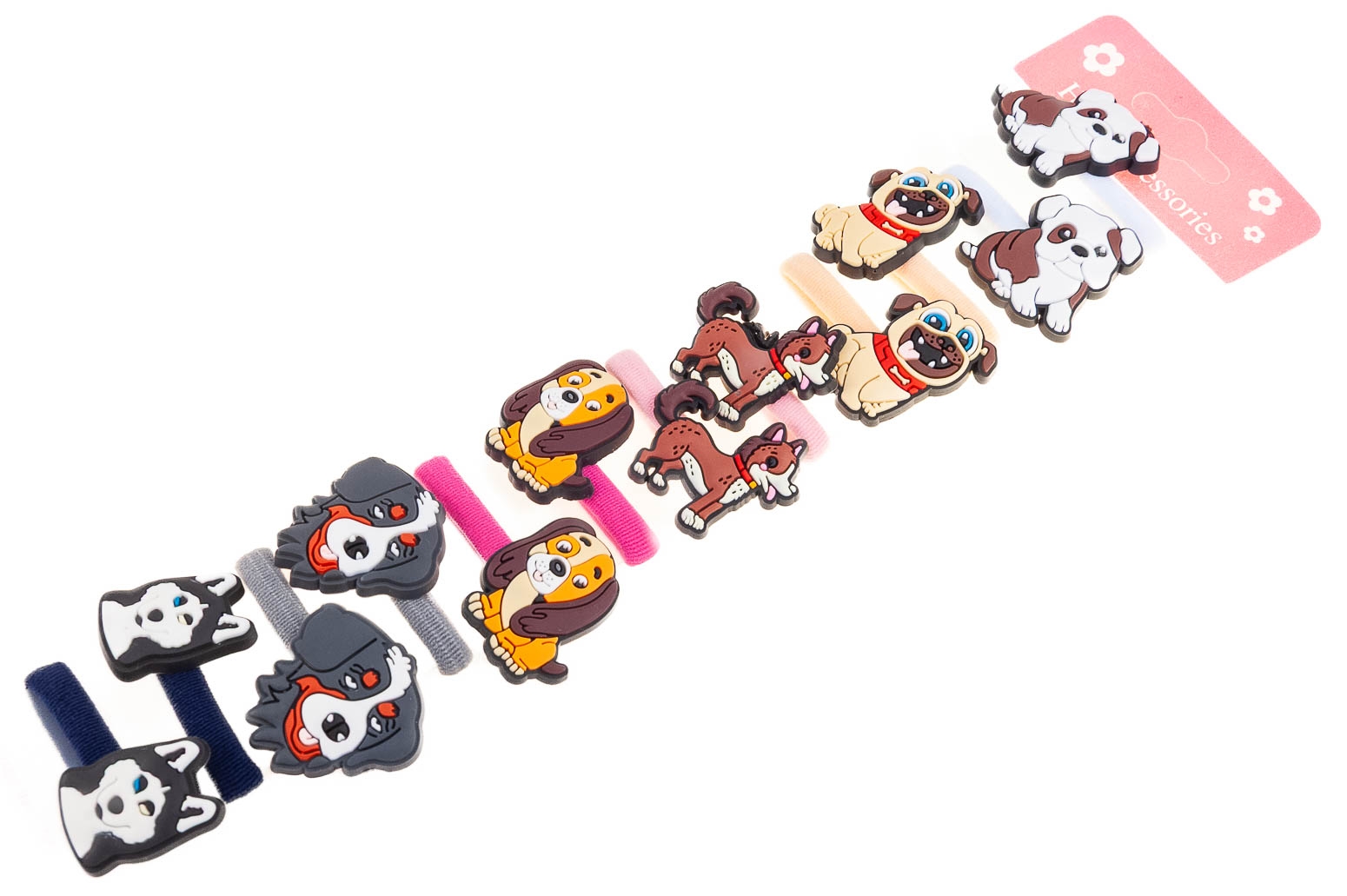 Klasyczne gumki do włosów z uroczymi ozdobami w kształcie piesków.
