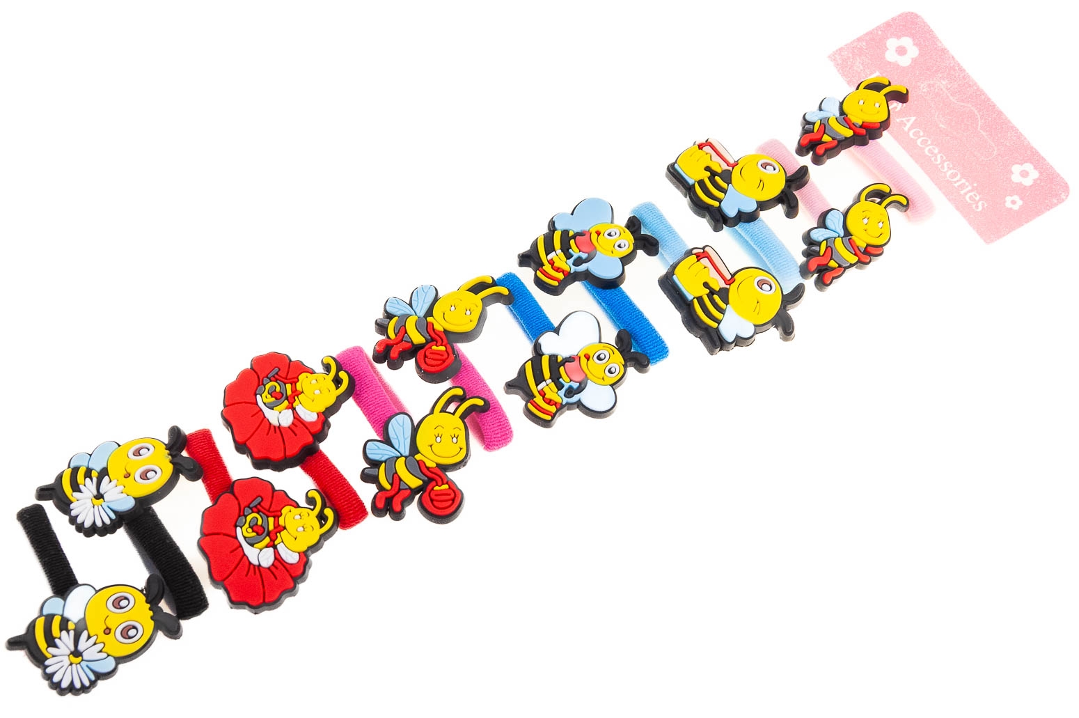 Klasyczne gumki do włosów z uroczymi ozdobami w kształcie pszczółek.Zestaw składa się z sześciu kolorów.