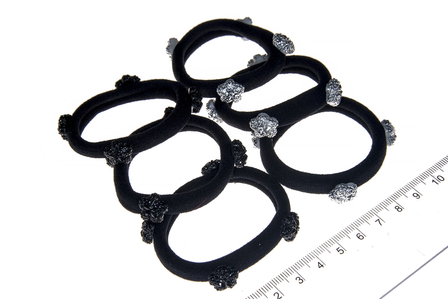 Czarne gumki do włosów z ozdobą w kształcie srebrnej i czarnej gwiazdki.
