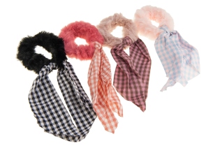 Klasyczna gumka z uroczą ozdobą – pomponem z uszami w kratkę.