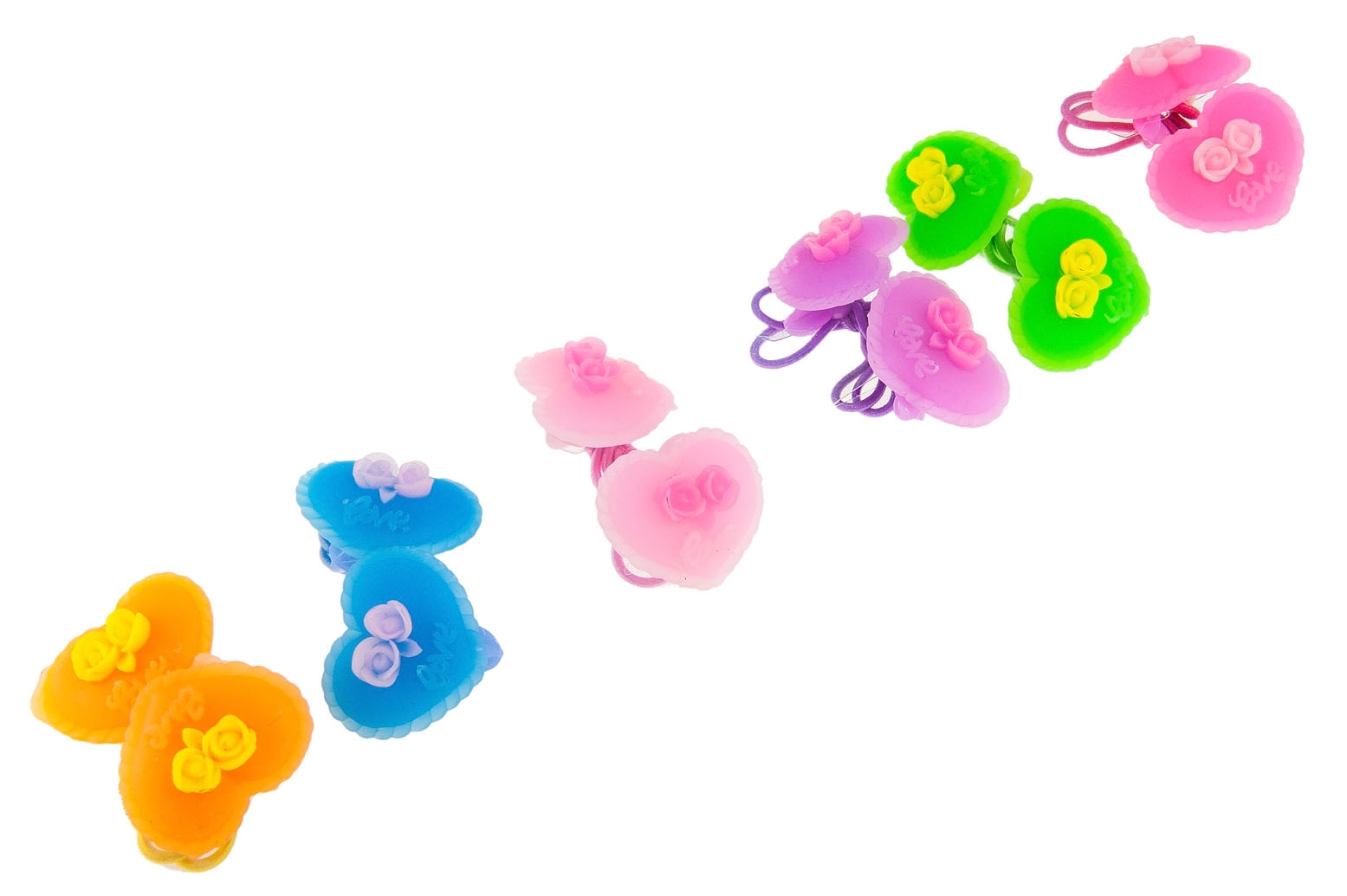 Kolorowe gumki do włosów z uroczą ozdoba w kształcie serca.