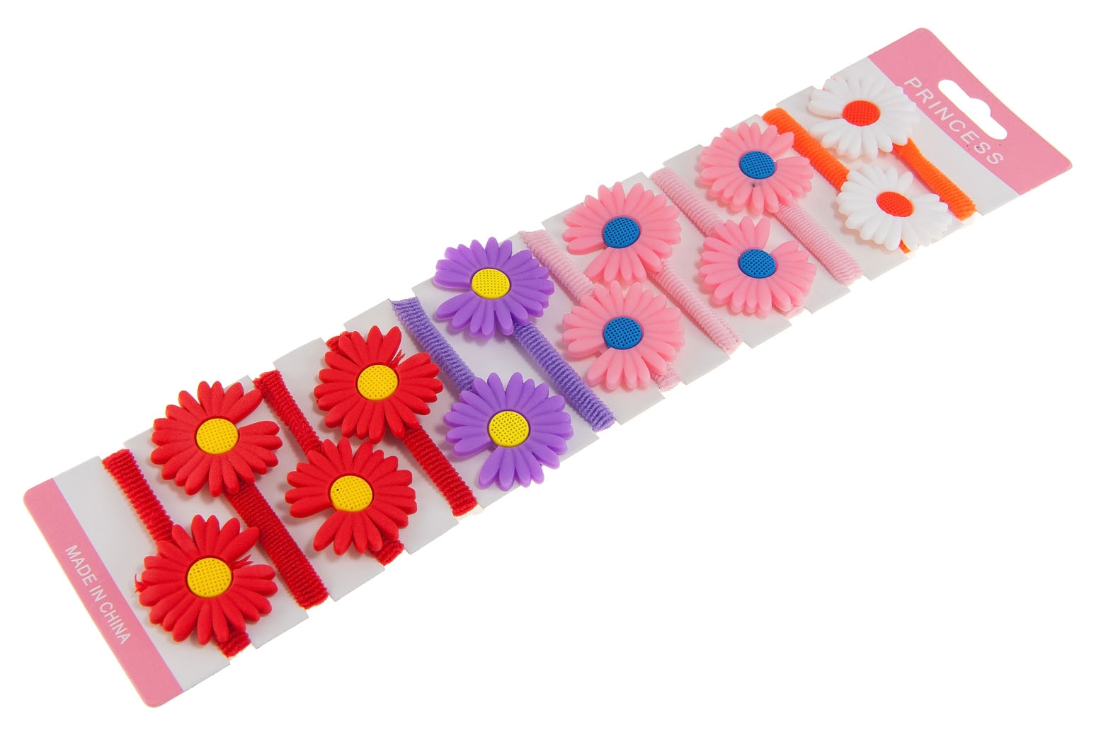 Zestaw ozdób do włosów, składający się z dwunastu gumek z uroczą ozdobą w kształcie stokrotek.