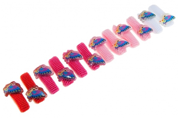 Klasyczne gumki do włosów, ozdobione są brokatowymi motylkami.