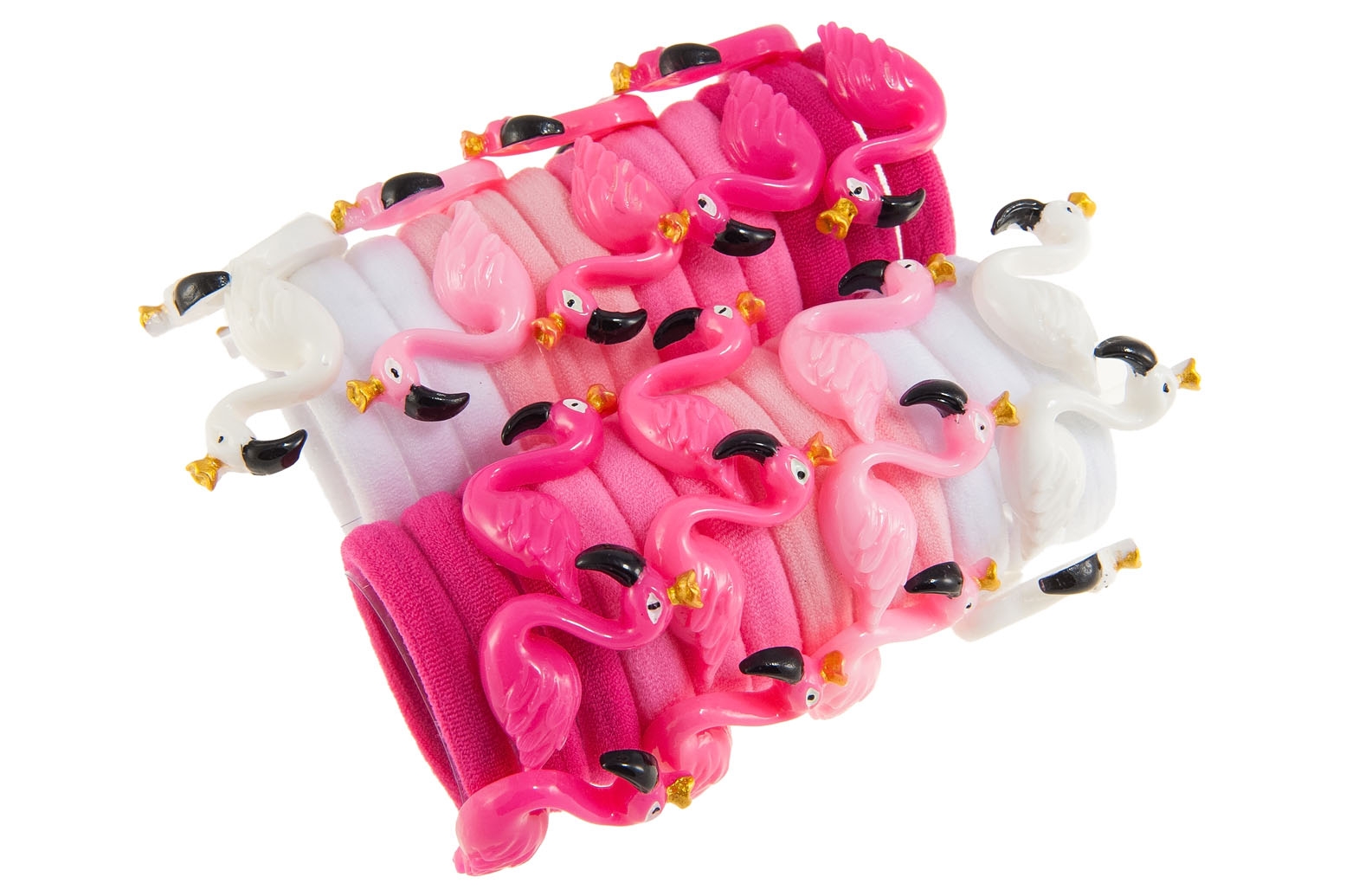 Klasyczna gumka z ozdobami w kształcie flamingów.