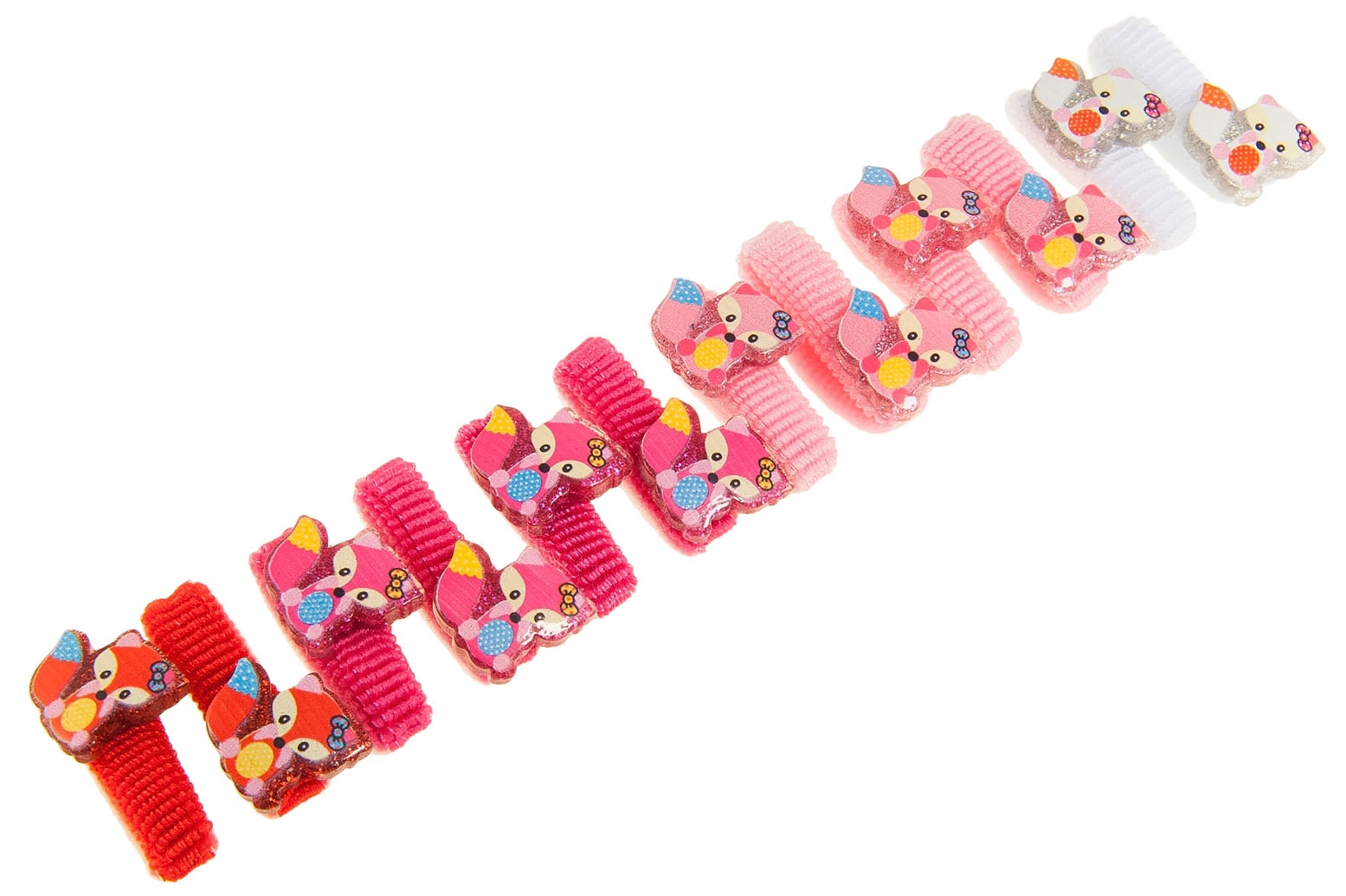 Klasyczne gumki do włosów z uroczą ozdobą w kształcie lisków.Zestaw składa sie z czterech kolorów: biały, czerwony, jasny i ciemny różowy.