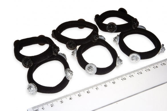 Czarne gumki do włosów z ozdobą w kształcie srebrnego i czarnego kapelusza