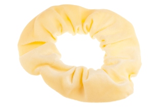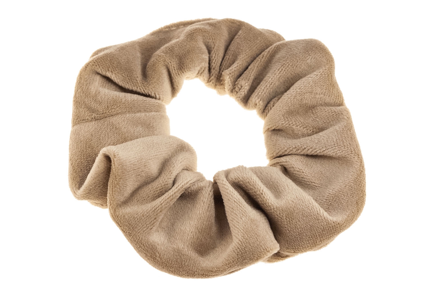 Modna gumka do włosów, wykonana z wzorzystego materiału.