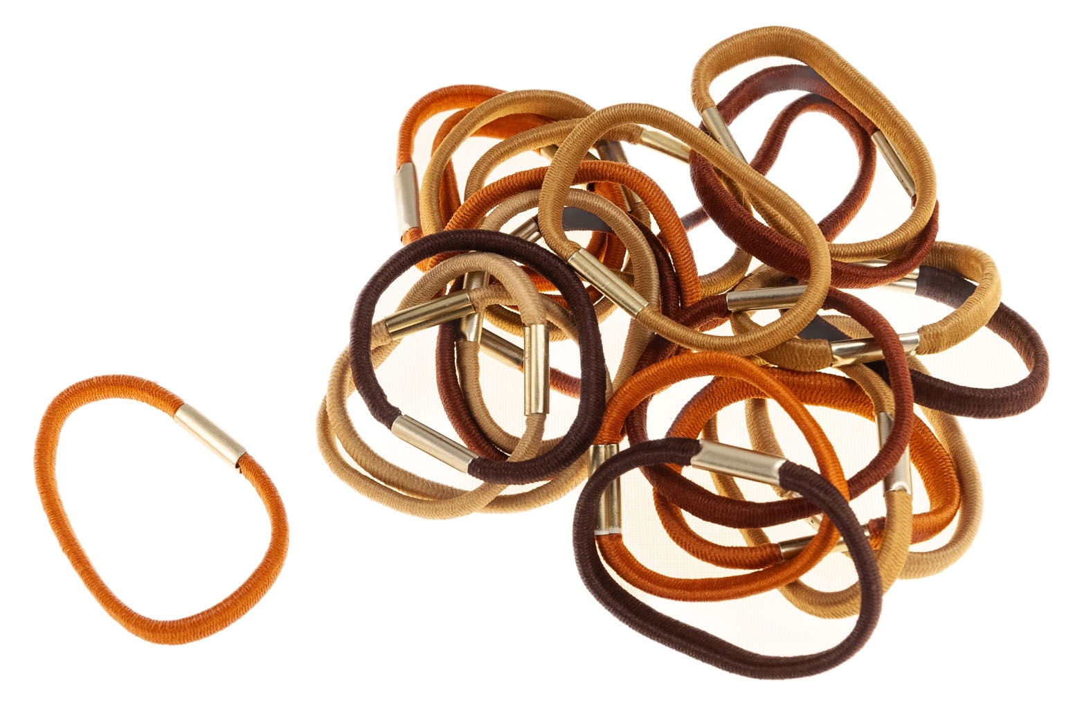 Klasyczne gumki do włosów, są wytrzymałe i dobrze trzymają włosy.Zestaw składa się z gumek w odcieniach koloru brązowego.