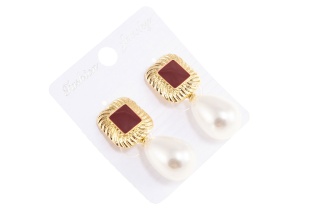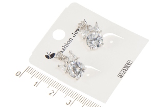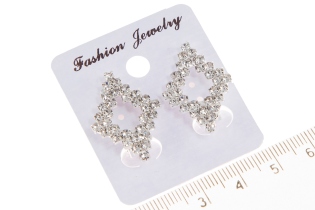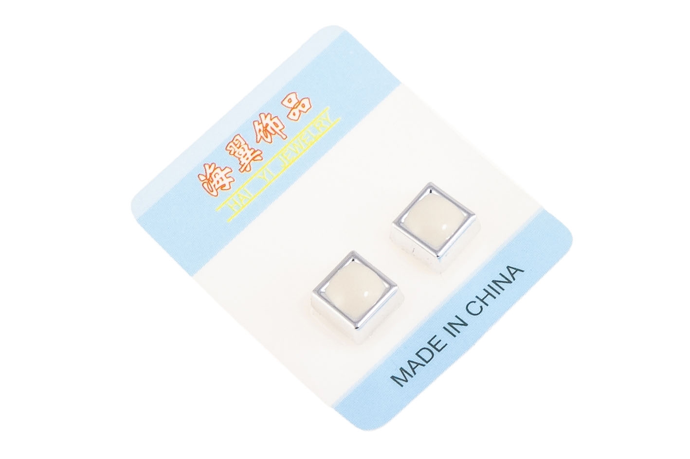 Srebrne kolczyki na magnes. Kolczyki są w kształcie kwadratu i ozdobione są białym kamieniem.
