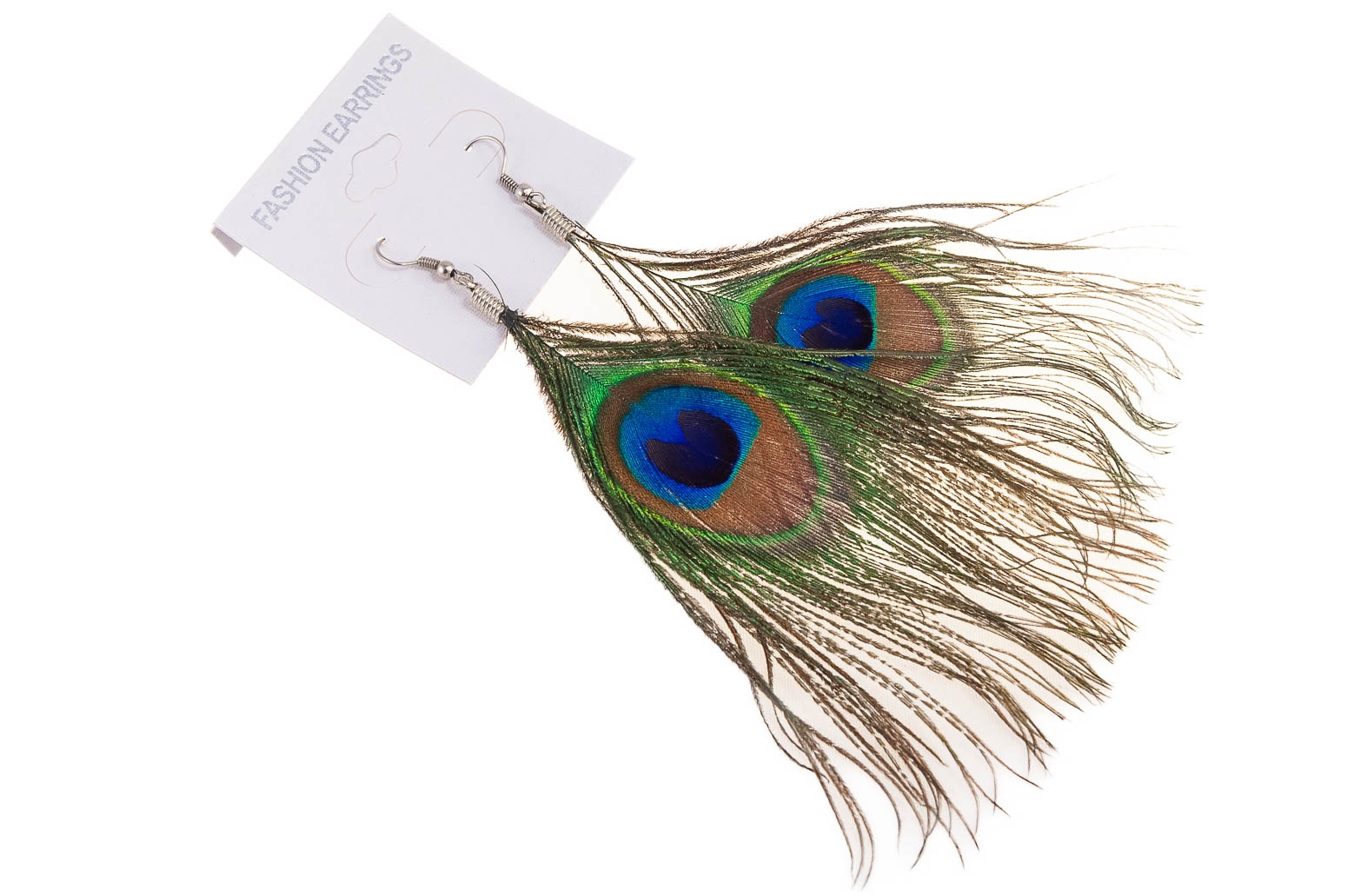 Oryginalne kolczyki z pawimi piórami.Wymiary kolczyków: