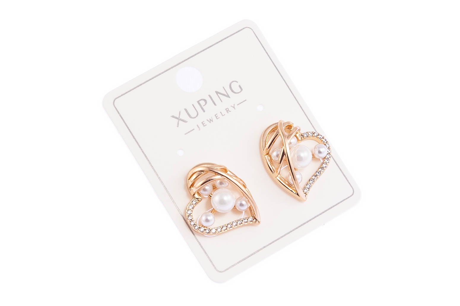 Eleganckie kolczyki w kształcie serduszek, ozdobine mieniącymi się dżetami i perełkami.Wymiary kolczyków: