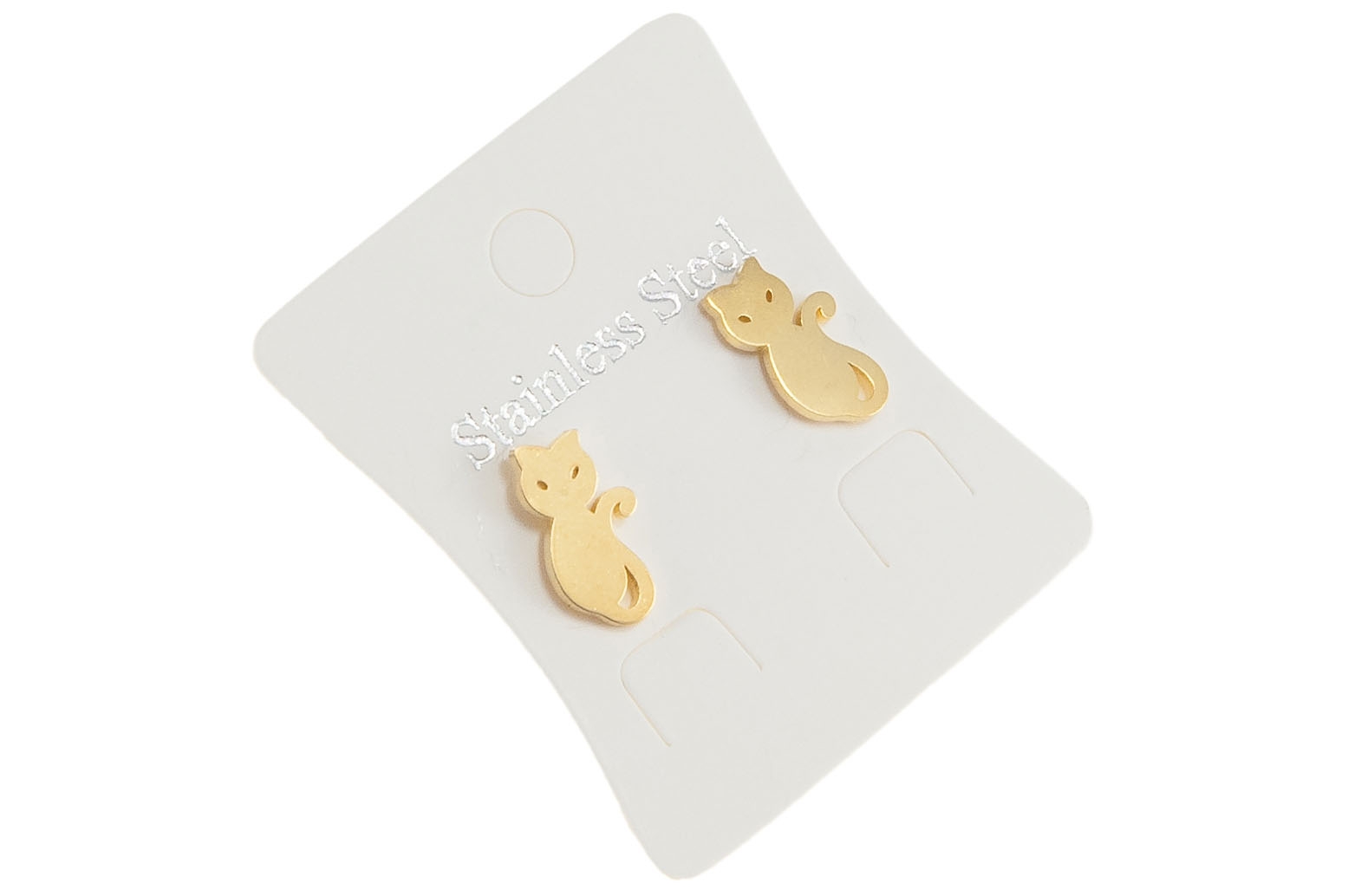Eleganckie złote kolczyk w kształcie kotka.