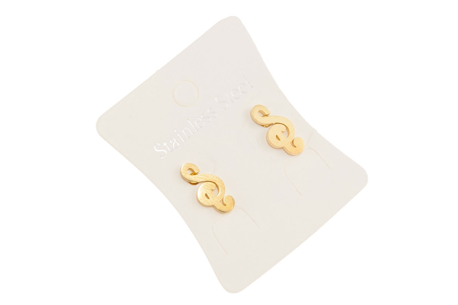 Eleganckie, złote kolczyki w kształcie kluczy wiolinowych.