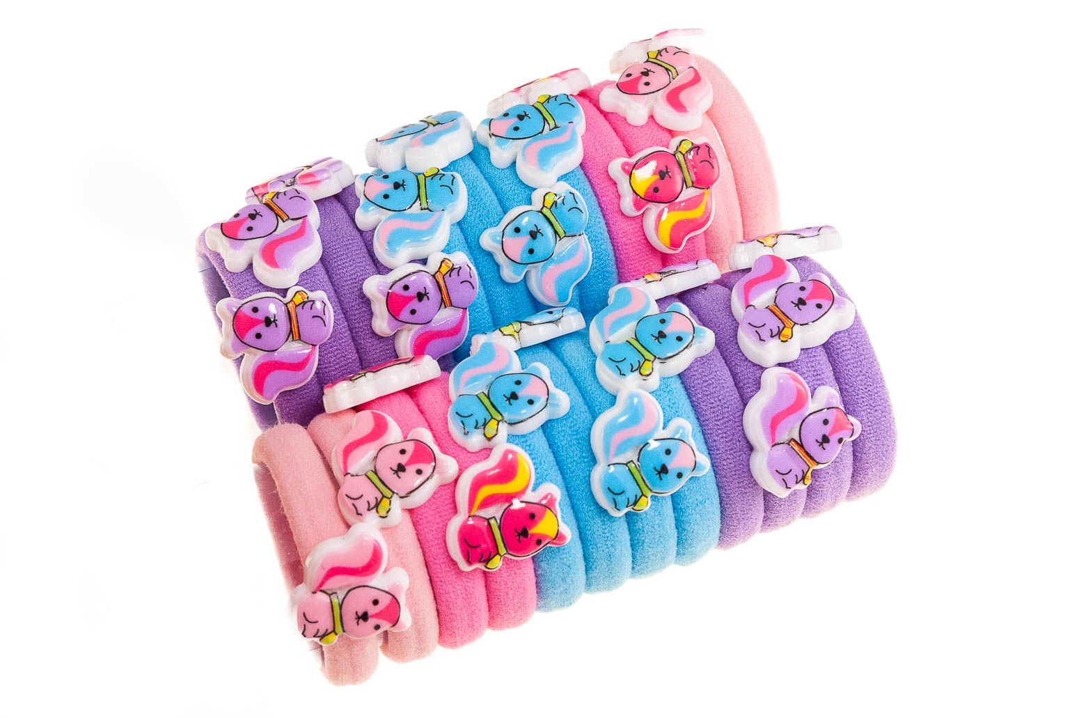 Klasyczne gumki do włosów z uroczą ozdobą w kształcie wiewiórką.Zestaw składa się z czterech kolorów: niebieski, fioletowy, jasny i ciemny różowy.