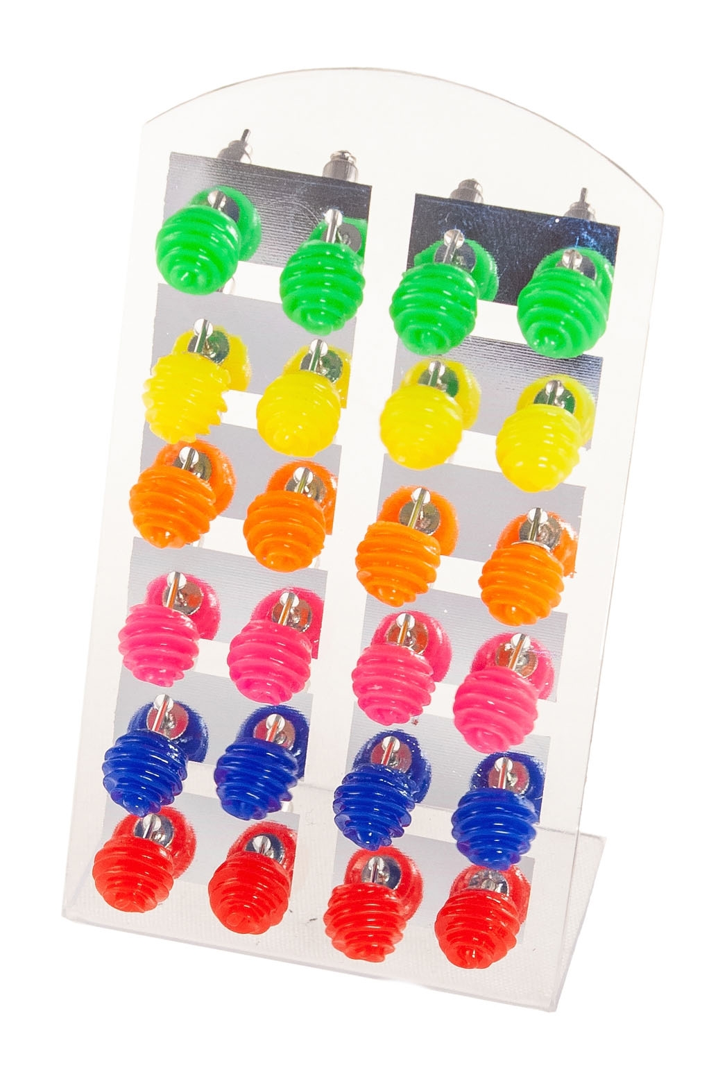 Kolorowe kolczykiZestaw składa się z sześciu kolorów: niebieski, różowy, czerwony, żółty, pomarańczowy i zielony.