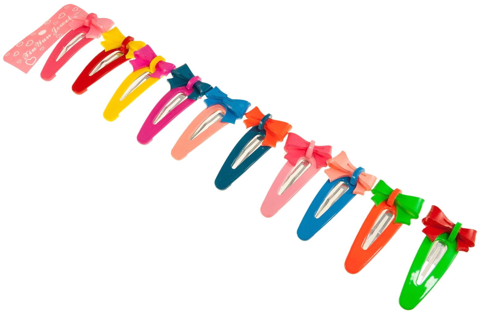Klasyczne spinki do włosów z uroczą ozdobą w kształcie kokardy.Zestaw składa się z dziesięciu kolorowych spinek.