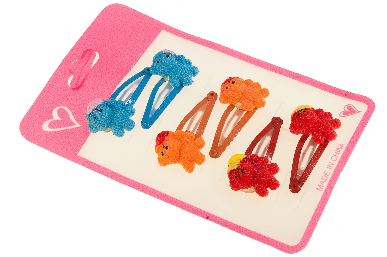 Klasyczne spinki do włosów z uroczą ozdobą w kształcie misia.