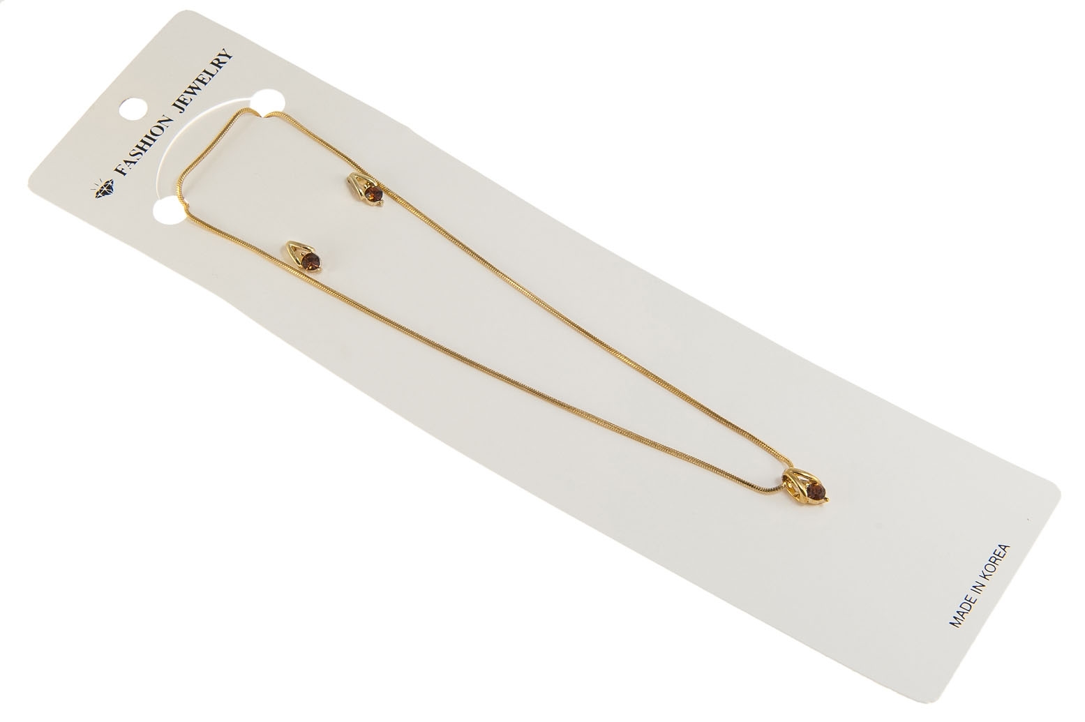 Biżuteria jest w złotym kolorze, ozdobina szlifowanymi kamieniami.