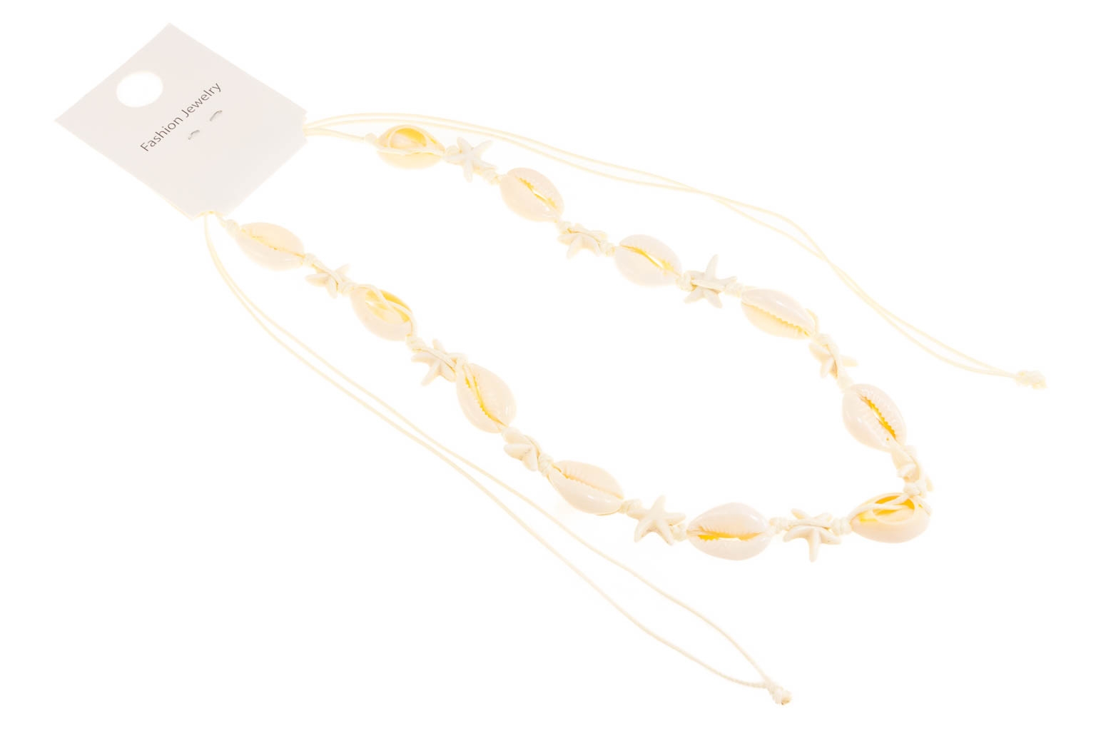 Naszyjnik składa się z kremowego sznurka i muszelek.