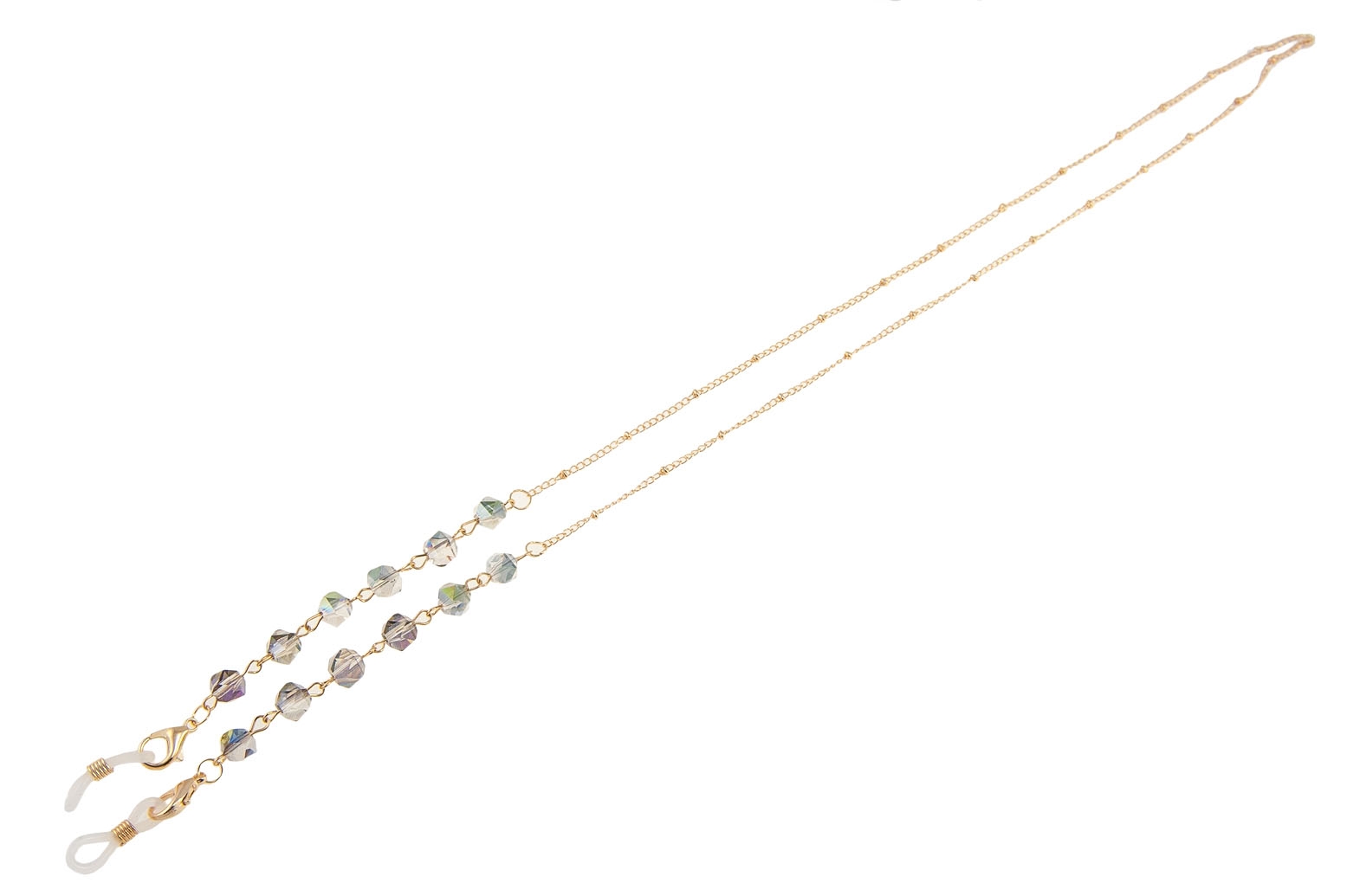 Łańcuszek w kolorze złotym ozdobiony szlifowanymi koralikami.