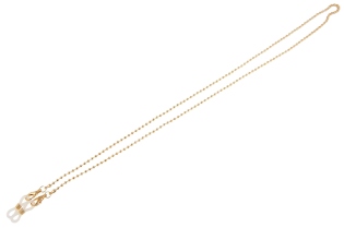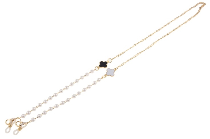 Elegancki łańcuszek do olukarów.Łańcuszek w kolorze złotym ozdobiony emaliowanym, białym i czarnym kwiatkiem i perełkami.