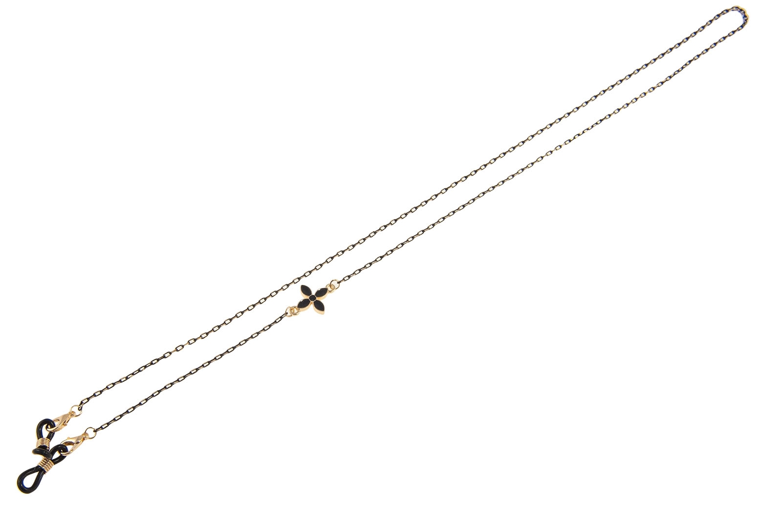 Łańcuszek w kolorze czarnym ozdobiony emaliowanym, czarnym kwiatkiem.