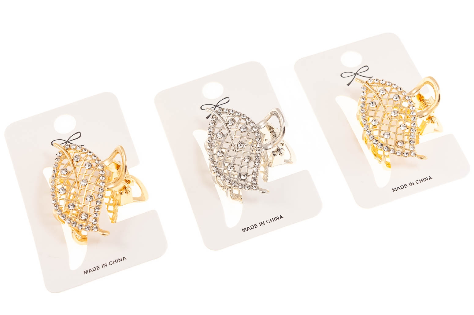Małe spinki do włosów wykonana z wytrzymałego materiału. Spinka jest w kształcie listka, ozdobina dżetami.Zestaw składa się z dwóch kolorów: srebrny i złoty.