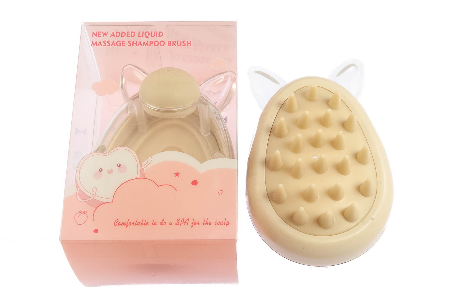 Masażer do skóry głowy, który posiada dozownik płynu.
