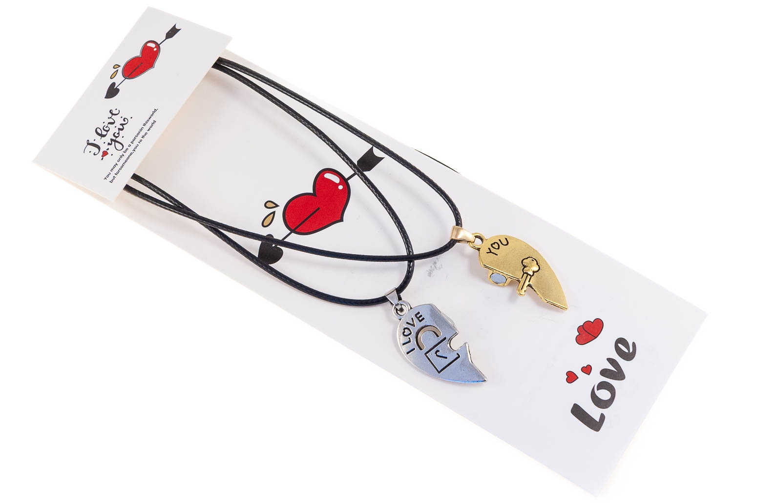 Zestaw składa się z dwóch naszyjników, które przy zbliżeniu tworzą całość.