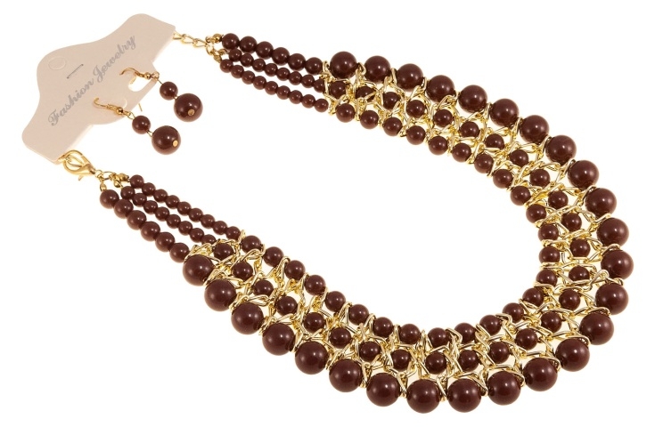 Oryginalny naszyjnik wykonany z brązowych koralików, do naszyjnika dodane są pasujące kolczyki.Wymiary łańcuszka:
