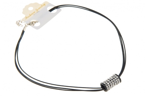 Elegancki naszyjnik w kolorze czarnym, ozdobiony szlifowani kamieniami.