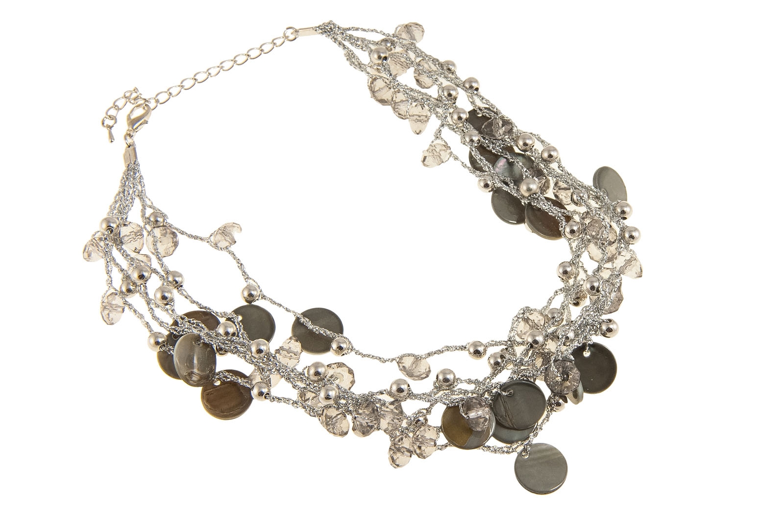 Elegancki naszyjnik składający się z koralików i szlofowanych kamieni.Wymiary łańcuszka: