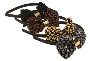 Opaski do włosów z ozdobą w kształcie kwiatka z dżetami.