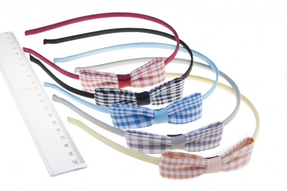 Opaski do włosów z ozdobą w kształcie kokardki w kratkę.