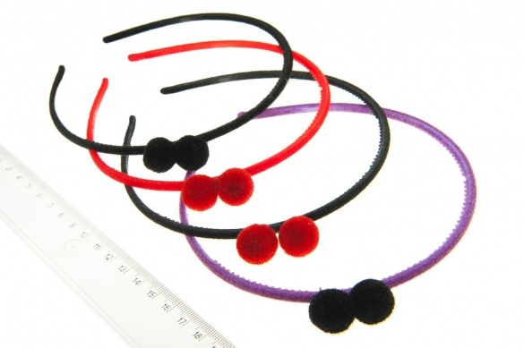 Opaski do włosów z czarnymi i czerwonymi kulkami.