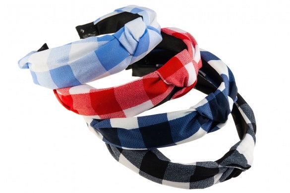 Opaska w kratę w kolorze błękitny, czerwony, granatowy i czarny.