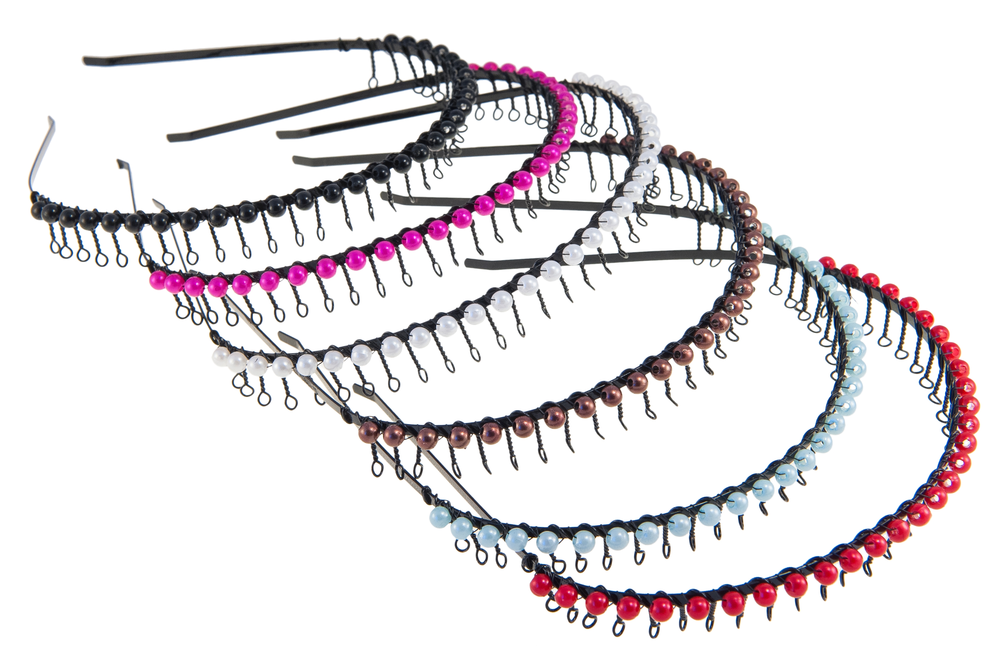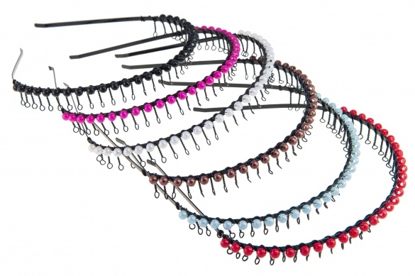Opaski ozdobione są perełkami w sześciu kolorach: czarnym, różowym, białym, brązowym, błękitnym i czerwonym.
