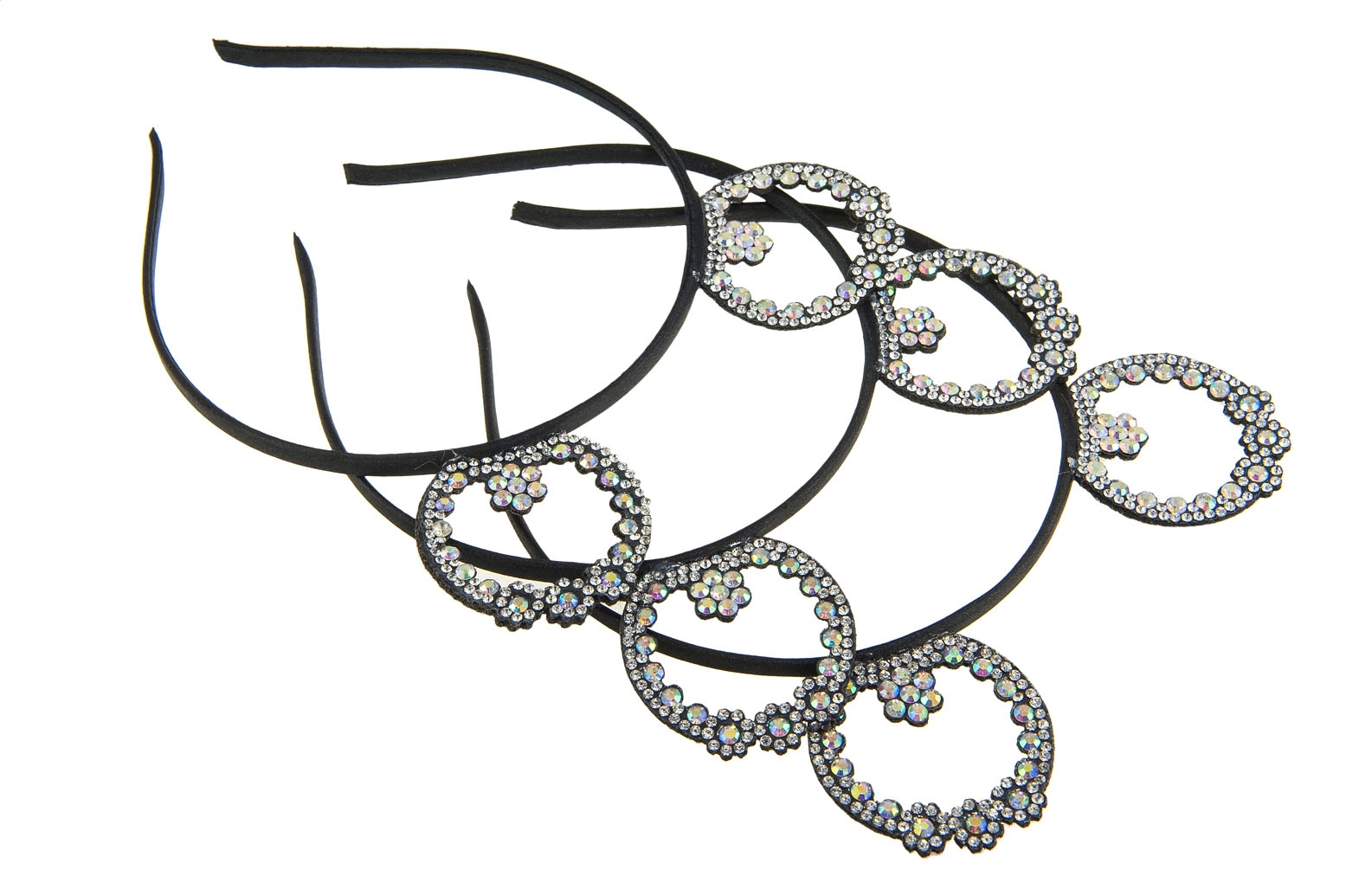 Czarne opaski z uszami, które są ozdobione szlifowanymi kamieniami.
