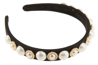 Urocze puchate opaski z kokardami ozdobionymi perełkami.