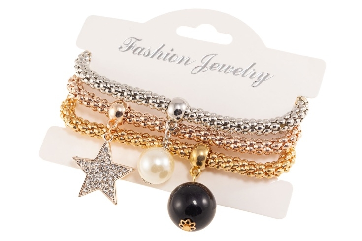 Oryginalna bransoletka z przywieszką.Zestaw składa się z trzech kolorów: srebrny, złoty i różowe złoto.