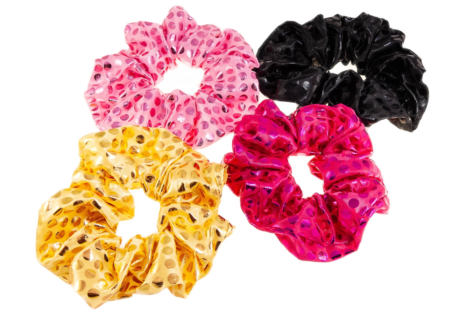 Modna gumka do włosów w cekiny.Zestaw skada się z czterech kolorów: żółty, czarny, jasny i ciemny różowy.