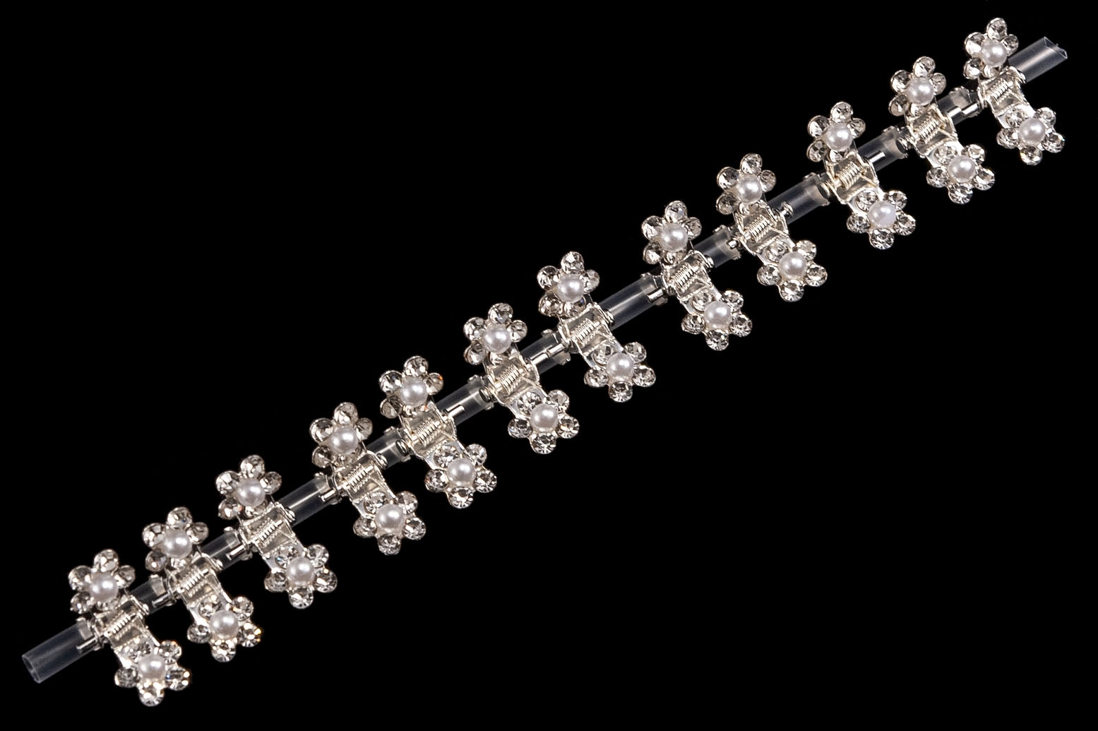 Srebrne miniszczęki ozdobione dżetowymi kwiatkami.Spinki nadadzą fryzurze elegancji i oryginalności.