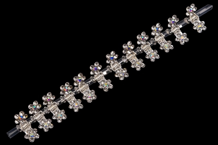 Srebrne miniszczęki ozdobione dżetowymi kwiatkami.Spinki nadadzą fryzurze elegancji i oryginalności.
