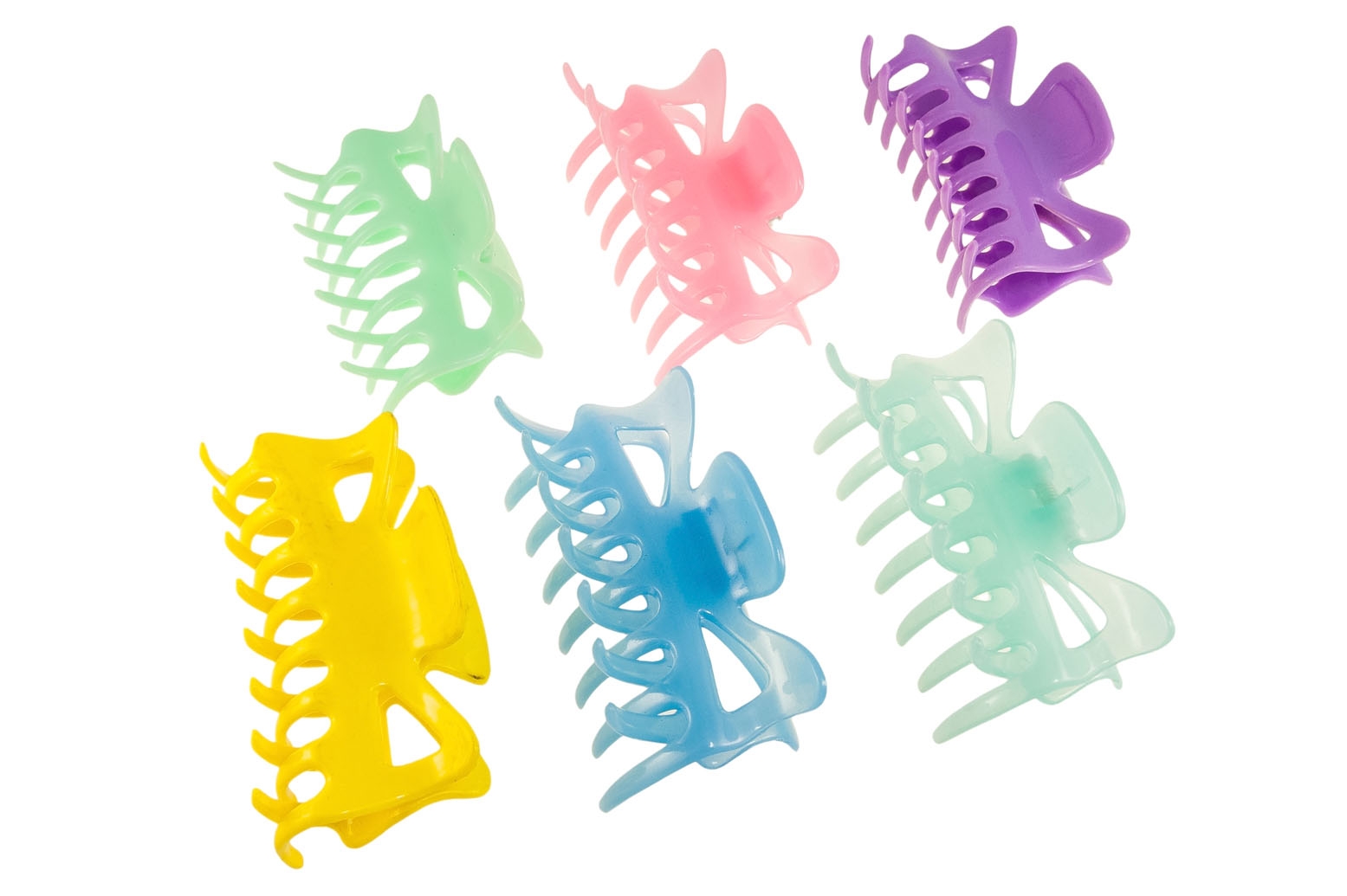 Duże spinki do włosów w pastelowych kolorach.Zestaw składa się z sześciu kolorów: miętowy, fioletowy, różowy, zielony, niebieski i żółty.