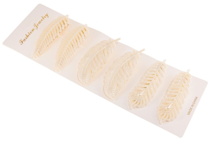 Elegancki górniak, wykonany z ecru perełek.Zestaw składa się ze spinek w kształcie piór.