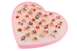 Pierścionki posiadają regulację średnicy i zapakowane są w urocze pudełko w kaształcie serca.