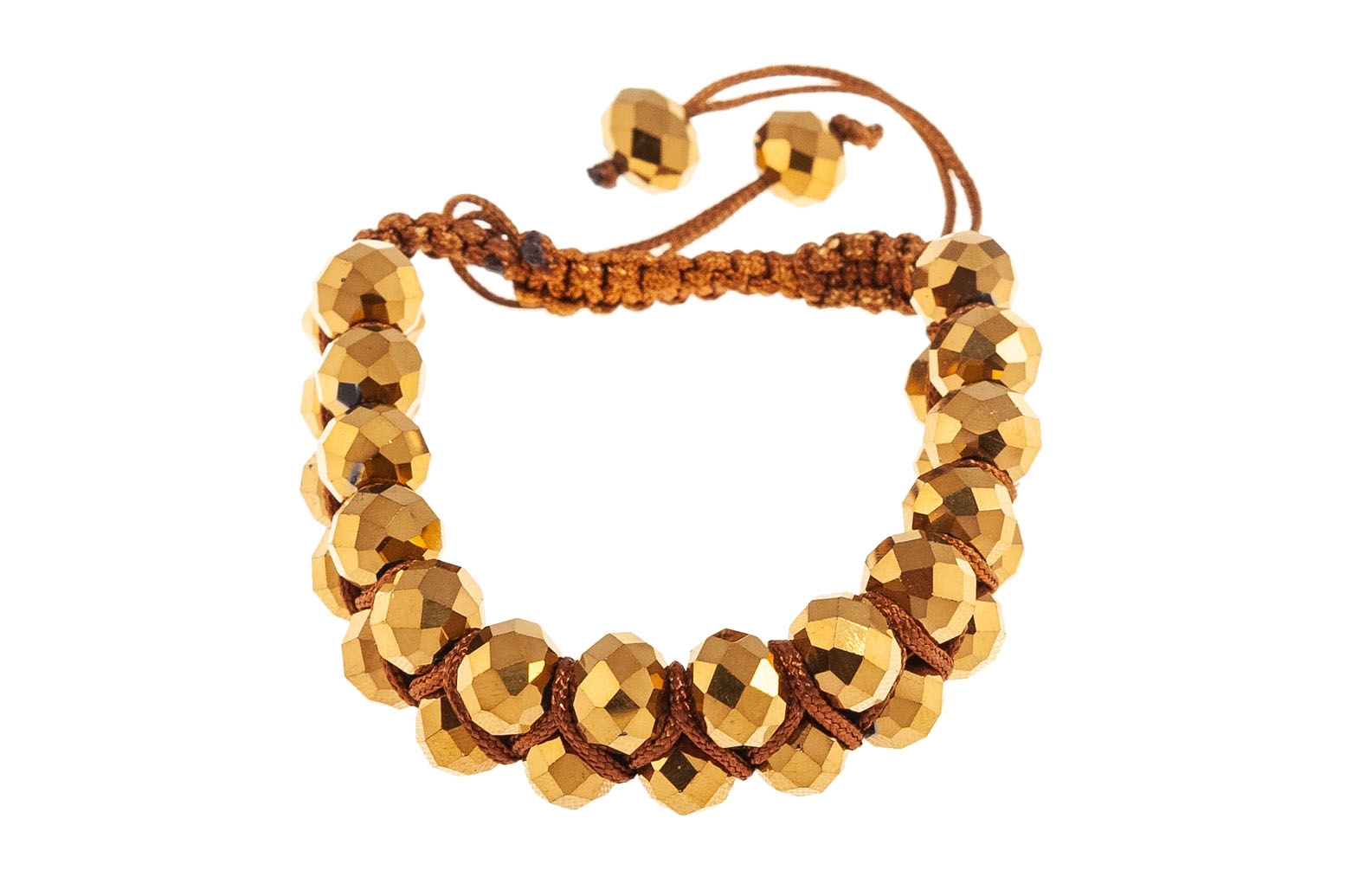 Pleciona bransoletka wykonana ze sznurka, ozdobiona szlifowanymi koralikami.Bransoletka w kolorze brązowym.